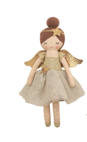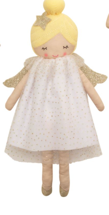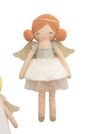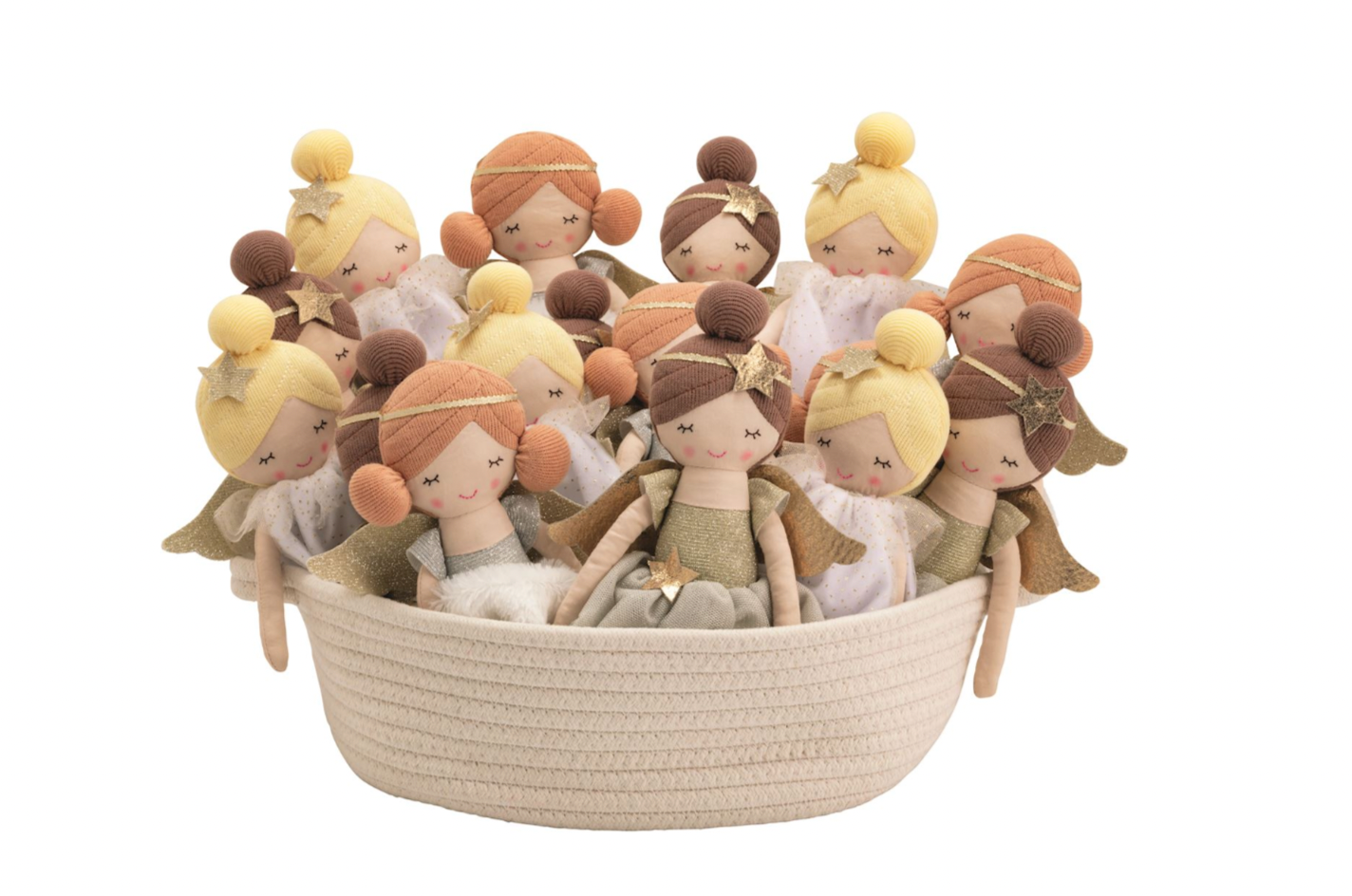 Angel dolls have mesh dresses and shimmer wings. Comes in cotton rope display basket.