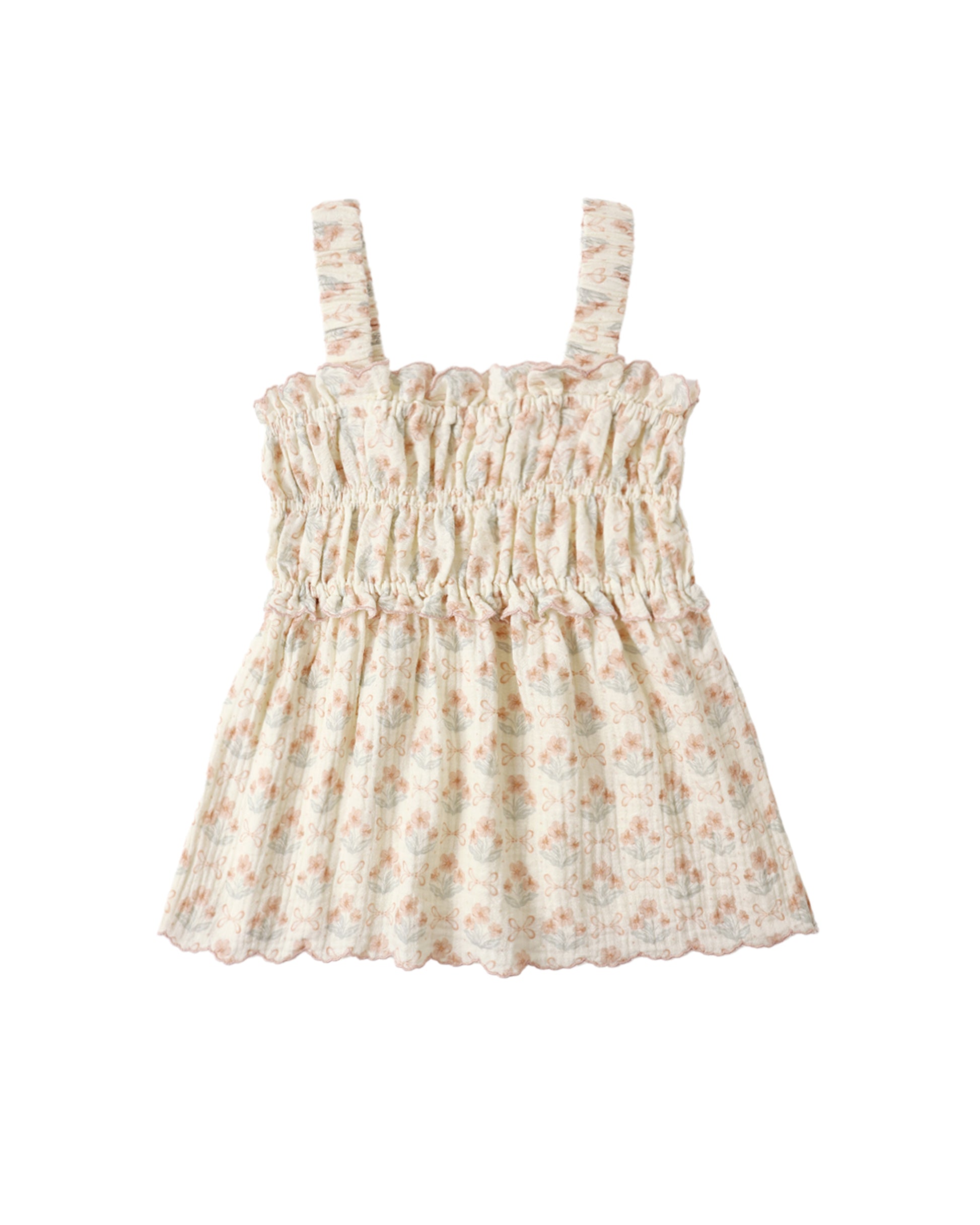 Twirl and play in this charming Blossom Smock Tank! Designed with a relaxed, breezy fit, this tank features a delightful smock detail that gives plenty of room to move and grow. Perfect for warm days at the park, beach adventures, or casual playtime, the soft fabric keeps her comfortable all day long. The cheerful design celebrates childhood joy with effortless style that parents love.