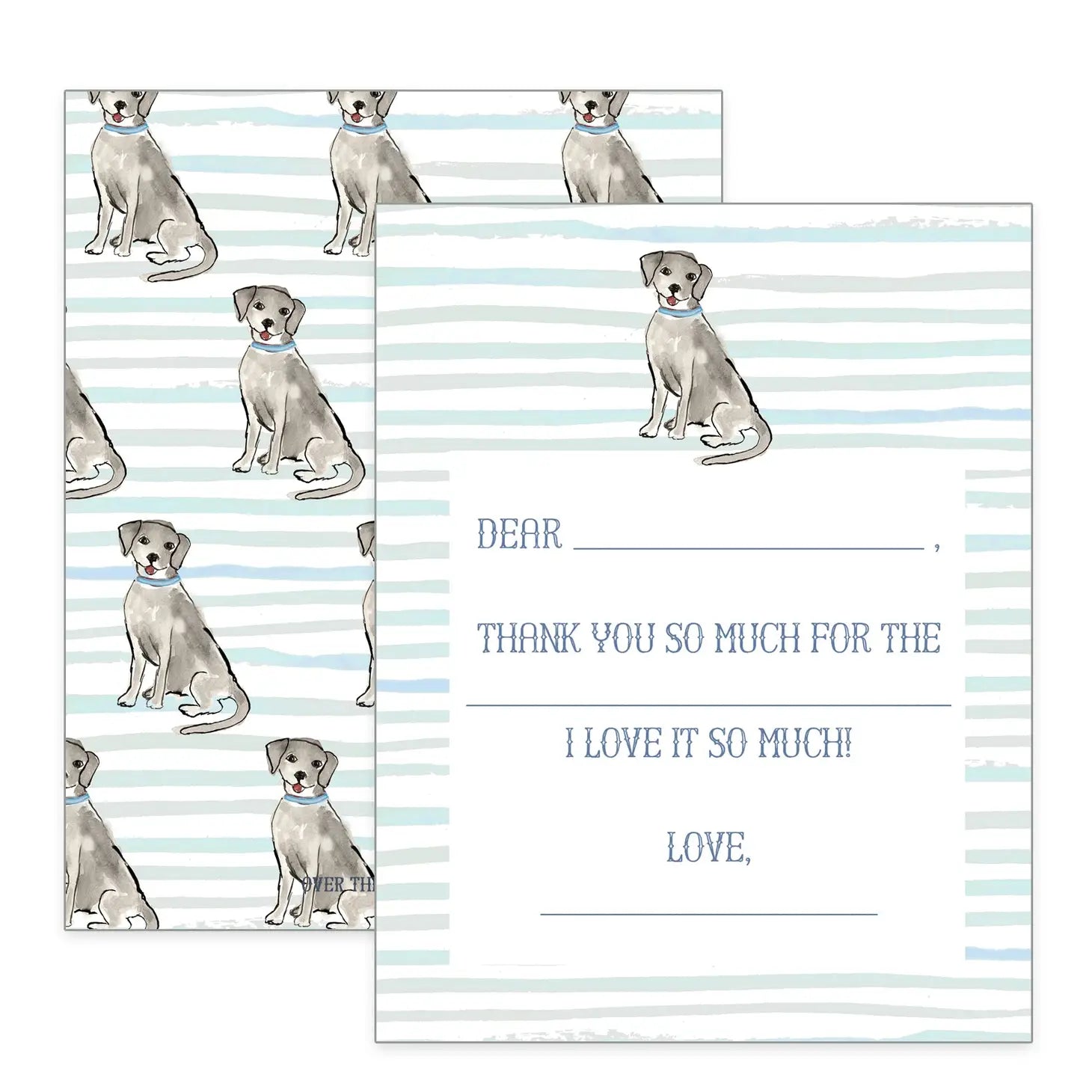 Your children will love writing thank you notes with these cute puppy dog starter cards. They are a perfect addition to our Puppy Dog with Blue Bow Party Collection. 4.25" x 5.5"