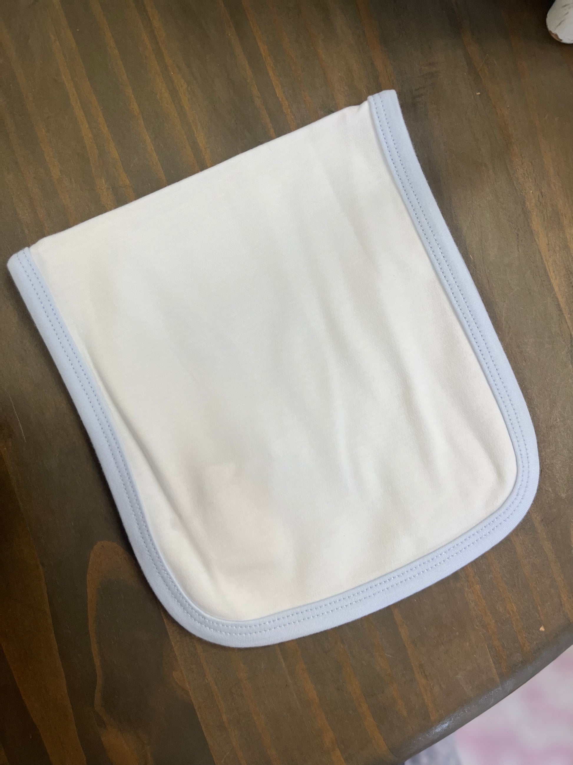 Elevate your style with our Blue Trim Slim Burp Cloth! Its added monogram adds a personal touch while efficiently protecting your clothes. Say goodbye to messy spills and hello to a stylish solution. Give yourself or a loved one this practical and personalized gift. Order now!