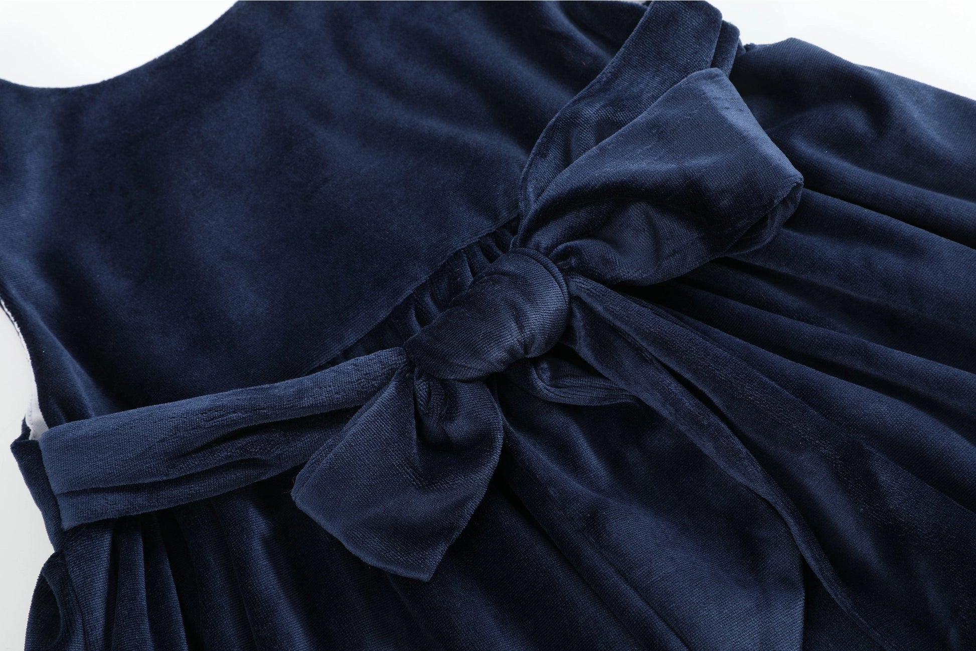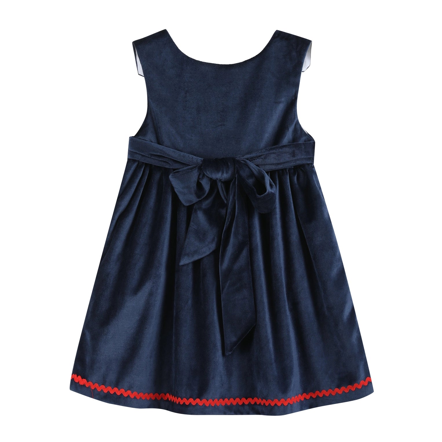 Dress your sweet girl up in holiday delight with our Navy Blue Velour Santa Christmas Jumper Dress! Detailed with cute bows at the shoulders and featuring an adorable appliqué Santa's and Christmas trees, this dress is the perfect blend of festive cheer. In pretty blue velour, it's the ideal outfit for your little one to twirl through joyful celebrations with a touch of Christmas cuteness.