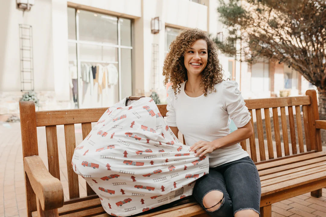 Stretchy fabric fits most all car seats, shopping carts, high chairs and nursing mothers. It can also be a trendy infinity scarf!