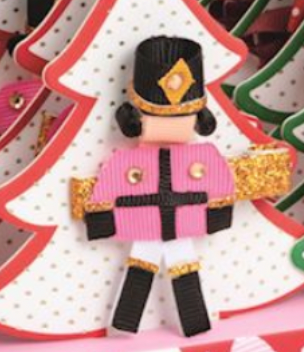 Rolled ribbon character hair clip with festive embellishments. Ages 3+.