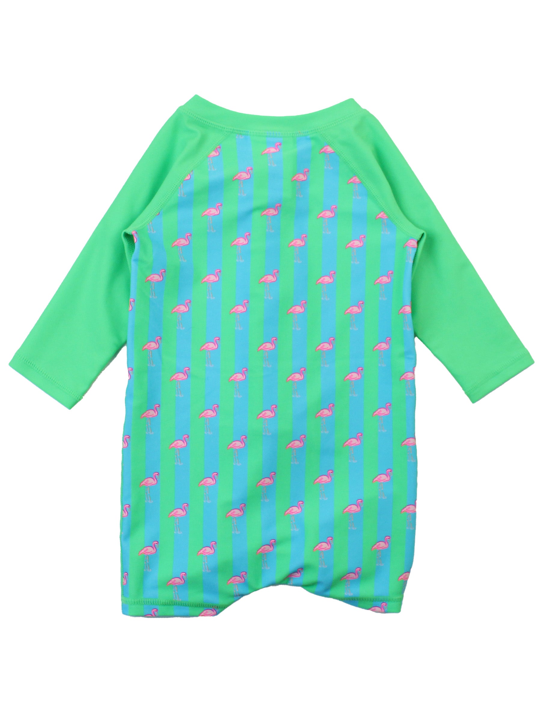 Stay stylish and protected with our Flamingo Stripe 1PC Rash Guard for baby boys. The bold stripes and adorable flamingo print provide UPF 50+ sun protection while keeping your little one looking cute. Made with high-quality materials, this rash guard is perfect for a day at the beach or pool.