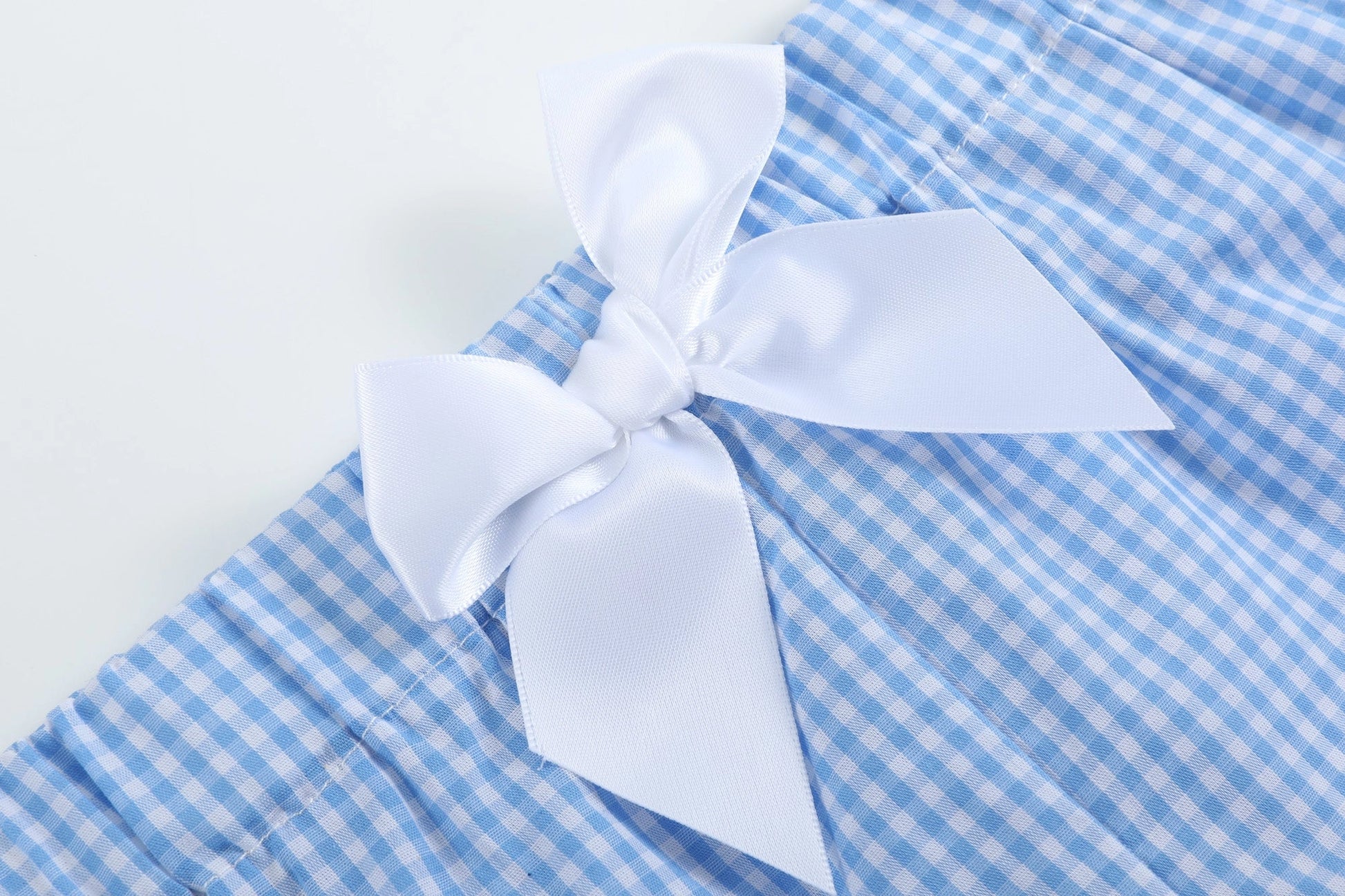 She’ll be ready to ace the style game in this Light Blue Gingham Golf Hole Tee & Shorts Set. Features a fun golf appliqué and is made in soft 100% cotton to ensure she is comfortable all day long. This set is perfect for hitting the green or the playground. Upgrade her wardrobe with this hole-in-one style! Sizing goes up to 5Y.