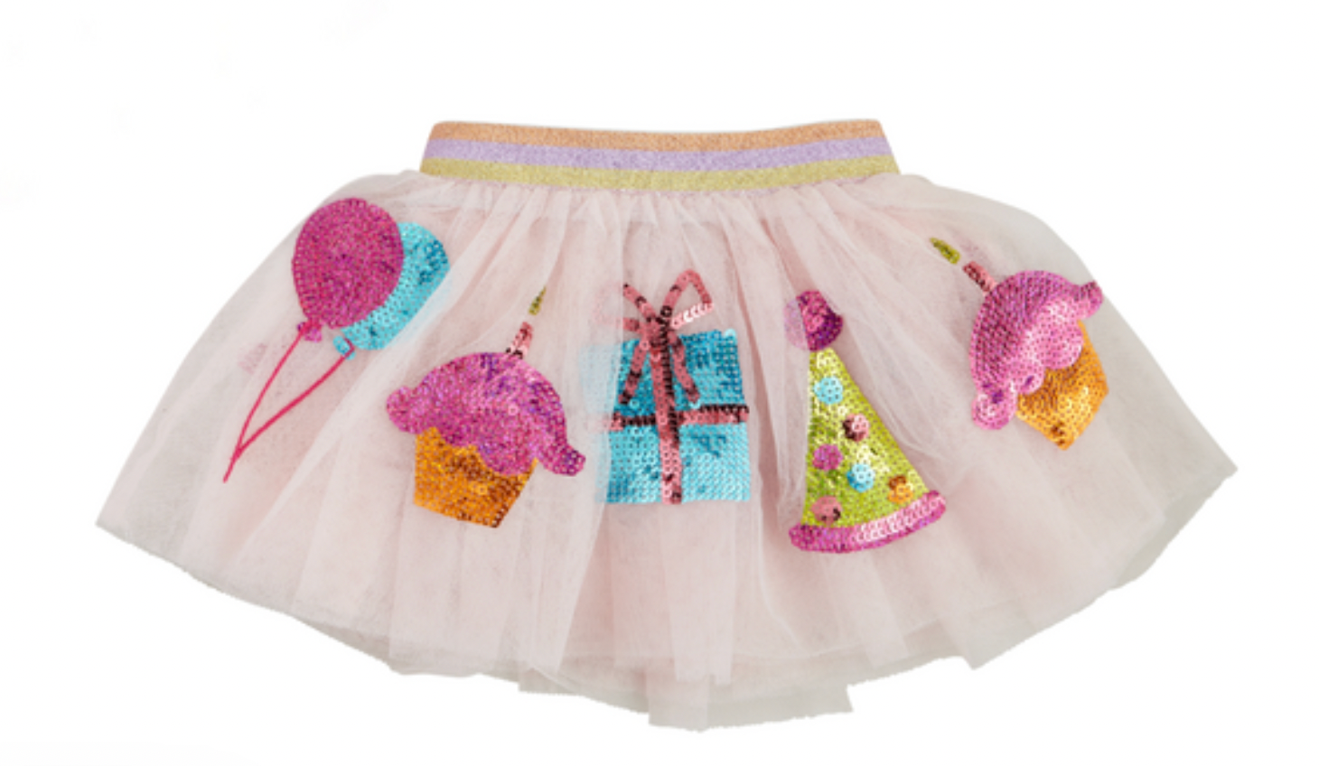 Layered mesh tutu with sequin icons and lurex elastic waistband.