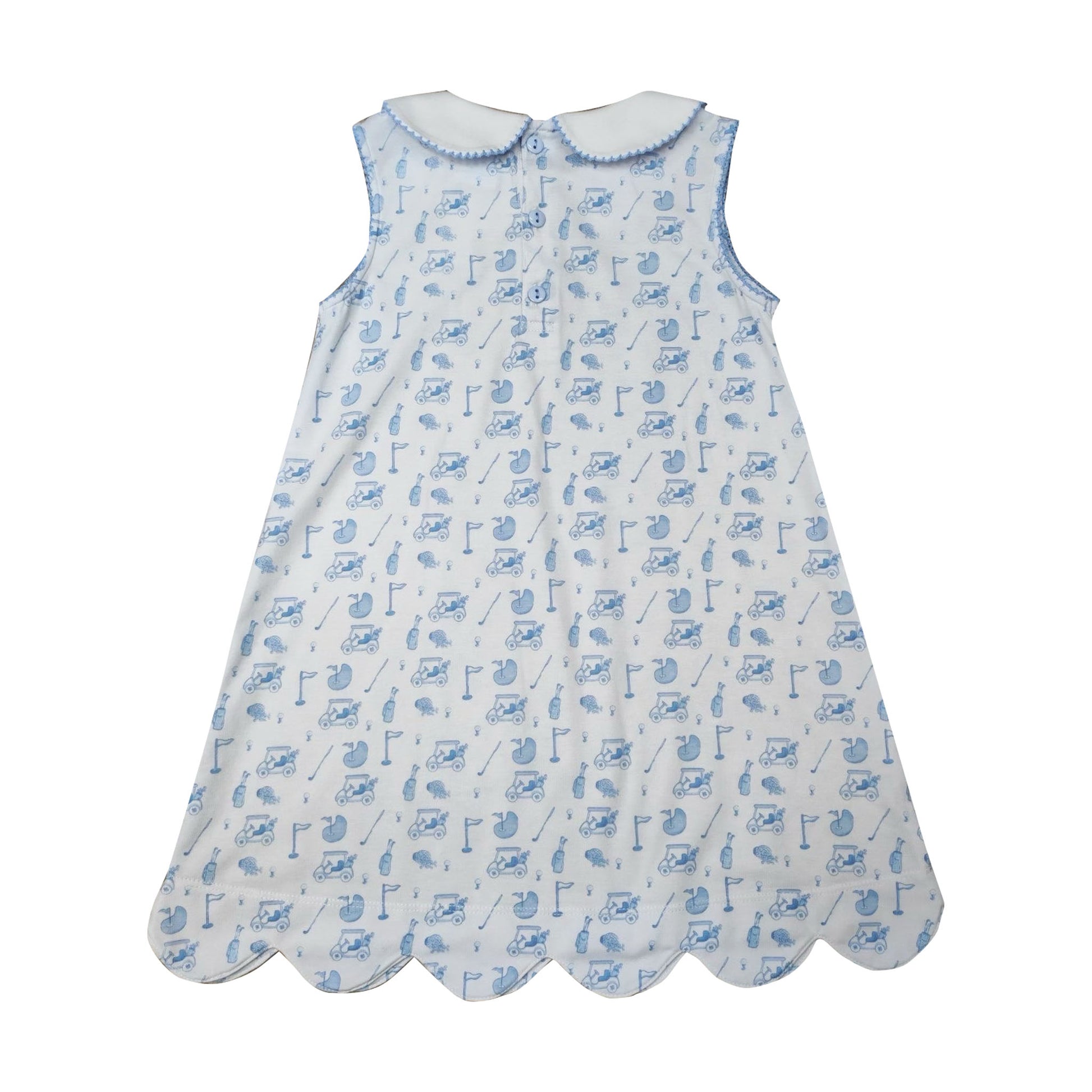 Introducing our Little Girls Golf Aline Dress, designed with a fun golf print and made from a comfortable knit material. Perfect for the little golfer in your life, this dress combines style and comfort for a day on the course or any occasion. Available now.