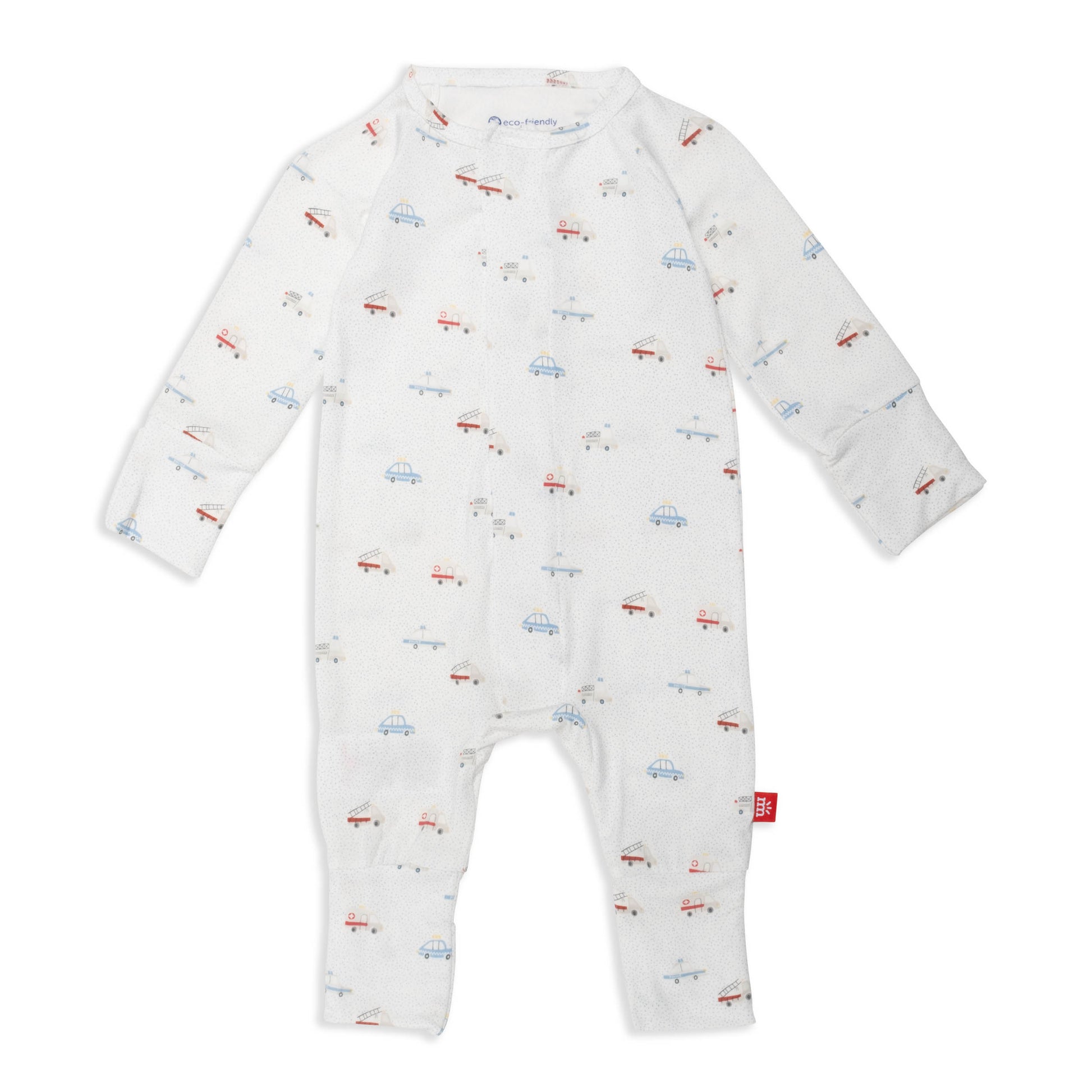 meet our grow with me convertible coverall, a one-piece that lets you adjust its features as your baby grows. magnetic closures ensure quick and quiet changes, and foldover cuffs for hands and feet extend the length and life of the coverall. made of eco-friendly TENCEL™ modal that's silky soft, breathable, and gentle on sensitive skin, this is one piece of clothing that baby won’t outgrow in the blink of an eye.