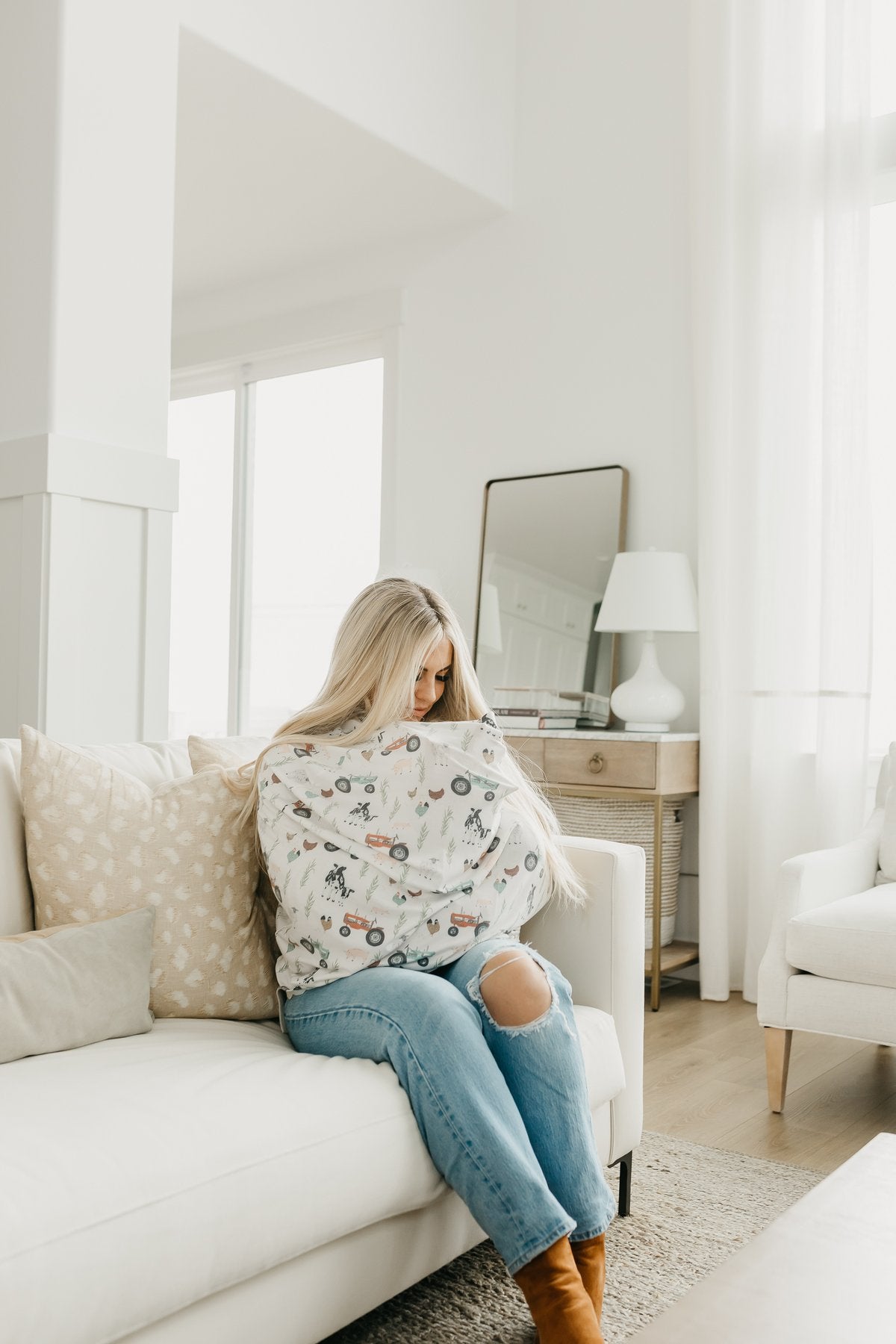 - Stretchy fabric fits most all car seats, shopping carts, high chairs and nursing mothers. It can also be a trendy infinity scarf!