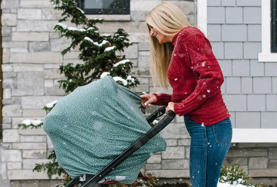 - Stretchy fabric fits most all car seats, shopping carts, high chairs and nursing mothers. It can also be a trendy infinity scarf!
