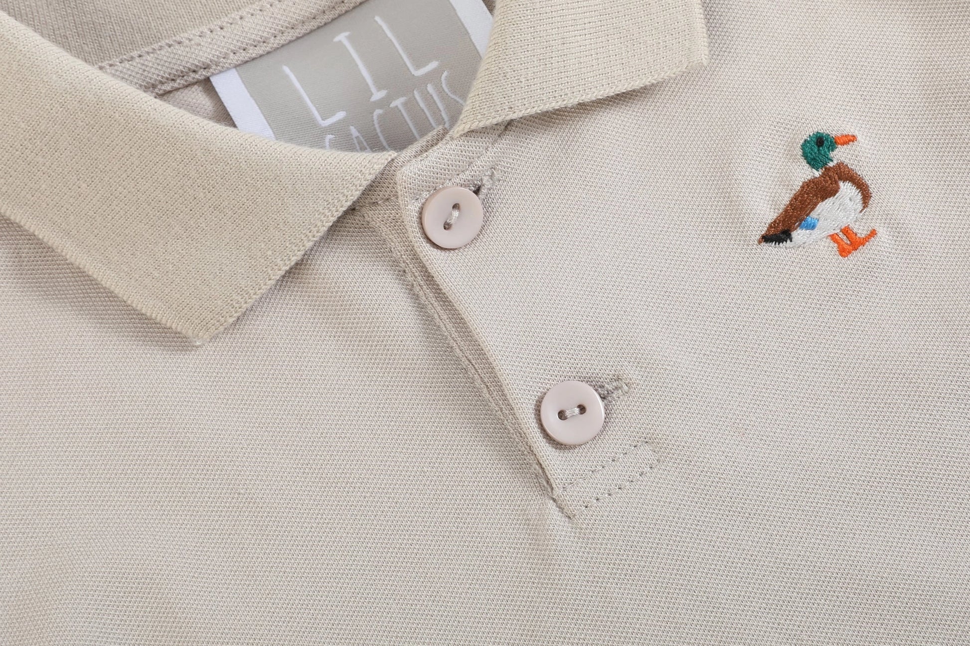 Elevate your little one's preppy style with our Light Brown Mallard Golf Polo Shirt. This collared shirt features an adorable embroidered mallard, adding a playful touch to a classic look. Perfect for any occasion, it's a comfortable and stylish choice for your little boy's wardrobe.