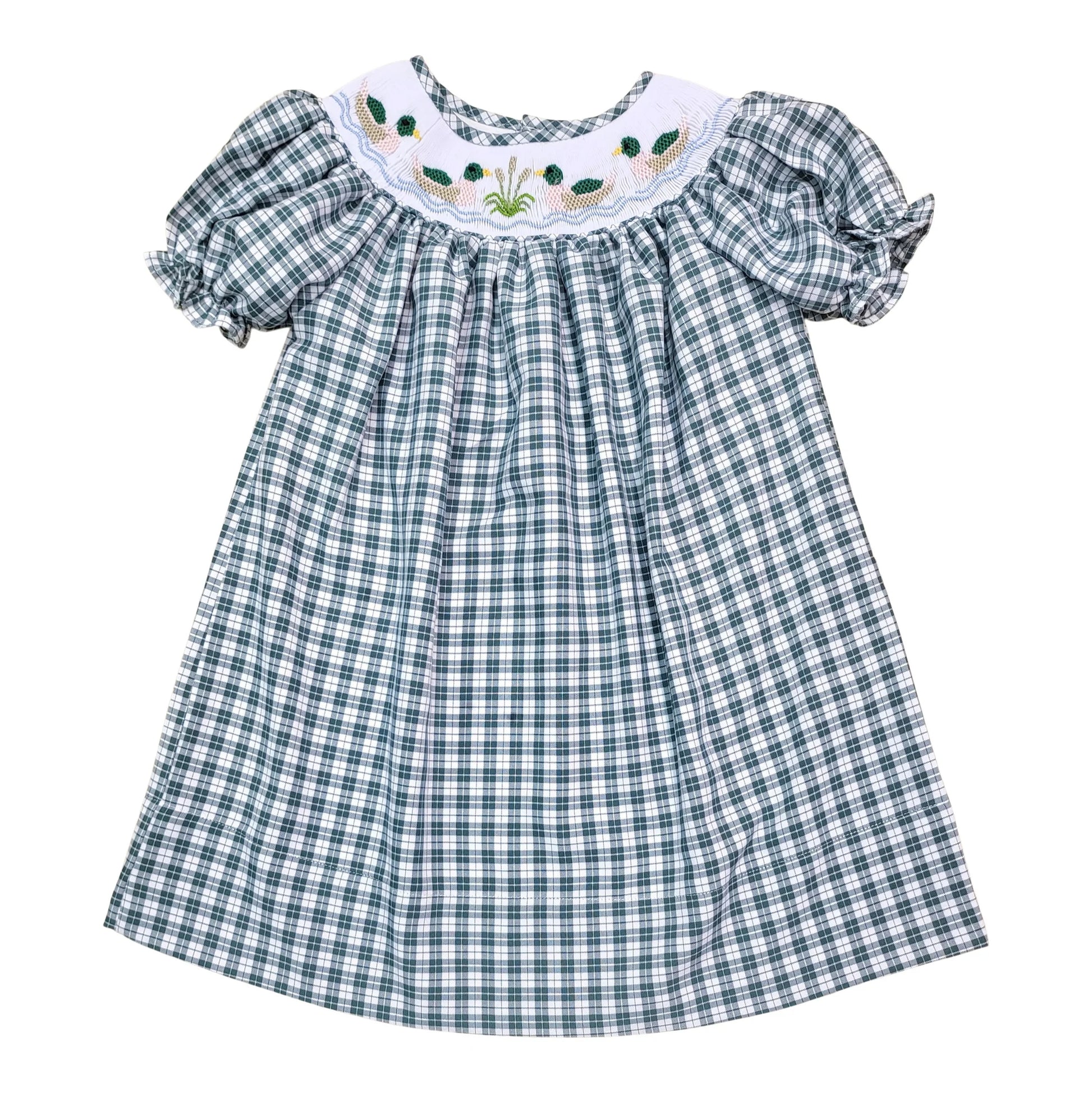 This green plaid smocked Mallard dress combines classic patterning with detailed craftsmanship. Featuring delicate smocking across the bodice, it offers a comfortable fit while adding refined texture. The traditional plaid lends timeless charm, making it perfect for both special occasions and everyday wear. Crafted to ensure ease of movement and lasting style, this dress is an expert choice for those seeking a blend of heritage aesthetics and thoughtful design.