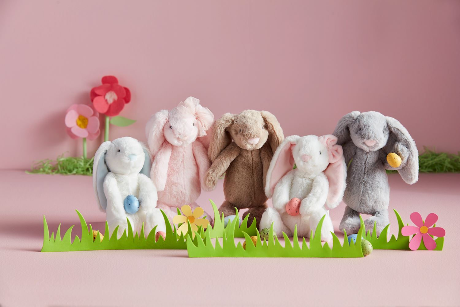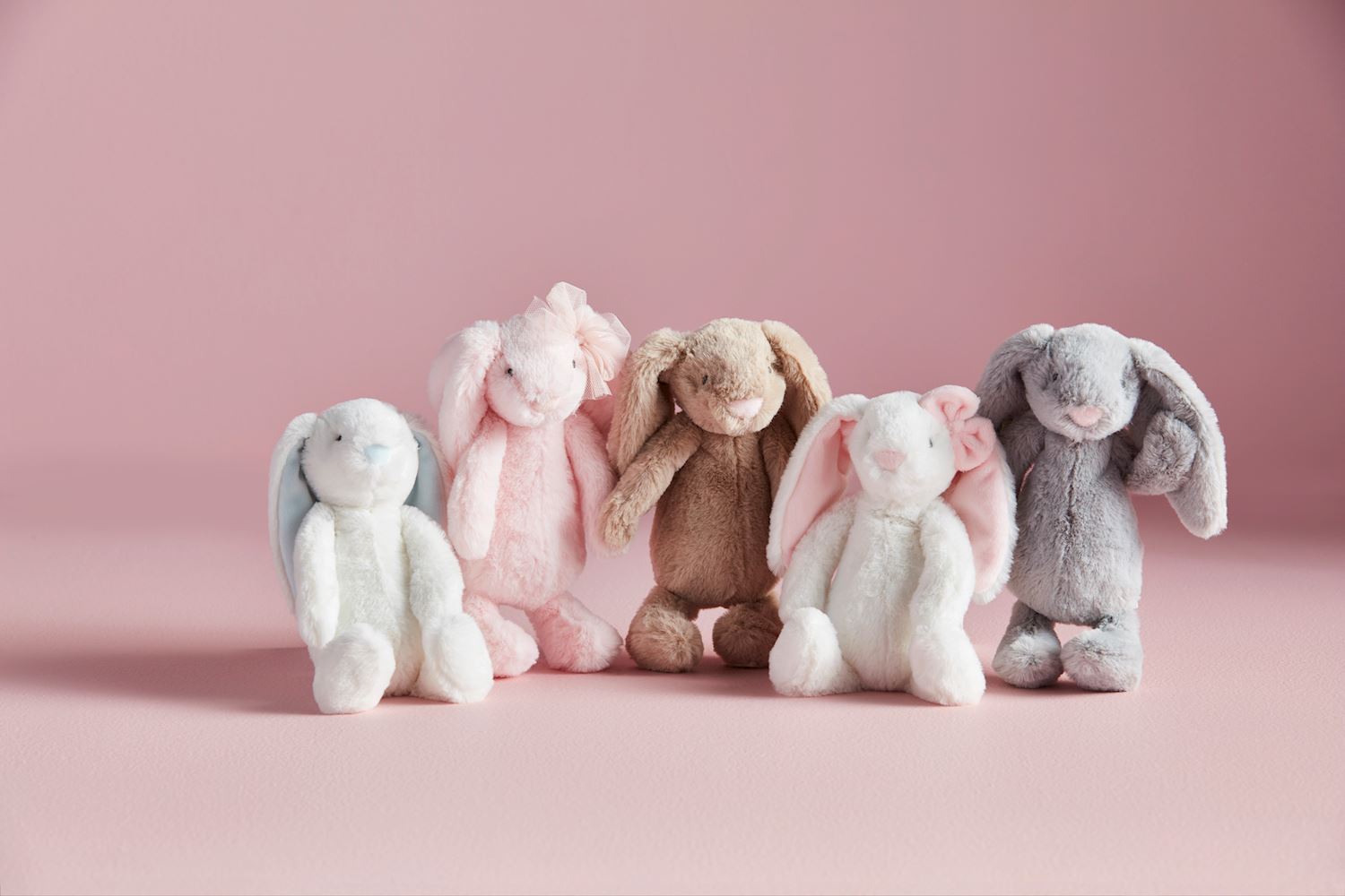 Faux fur mini plush with weighted bean seat for sitting. Comes in cotton rope display basket.