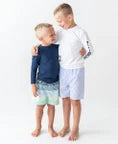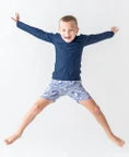 Our RuggedButts long sleeve rash guard top is great for active little guys. The UPF 50+ sun protective fabric and full coverage fit will keep him safe from the sun's harmful rays. The classic makes it easy to mix and match with your favorite RuggedButts swim trunks.