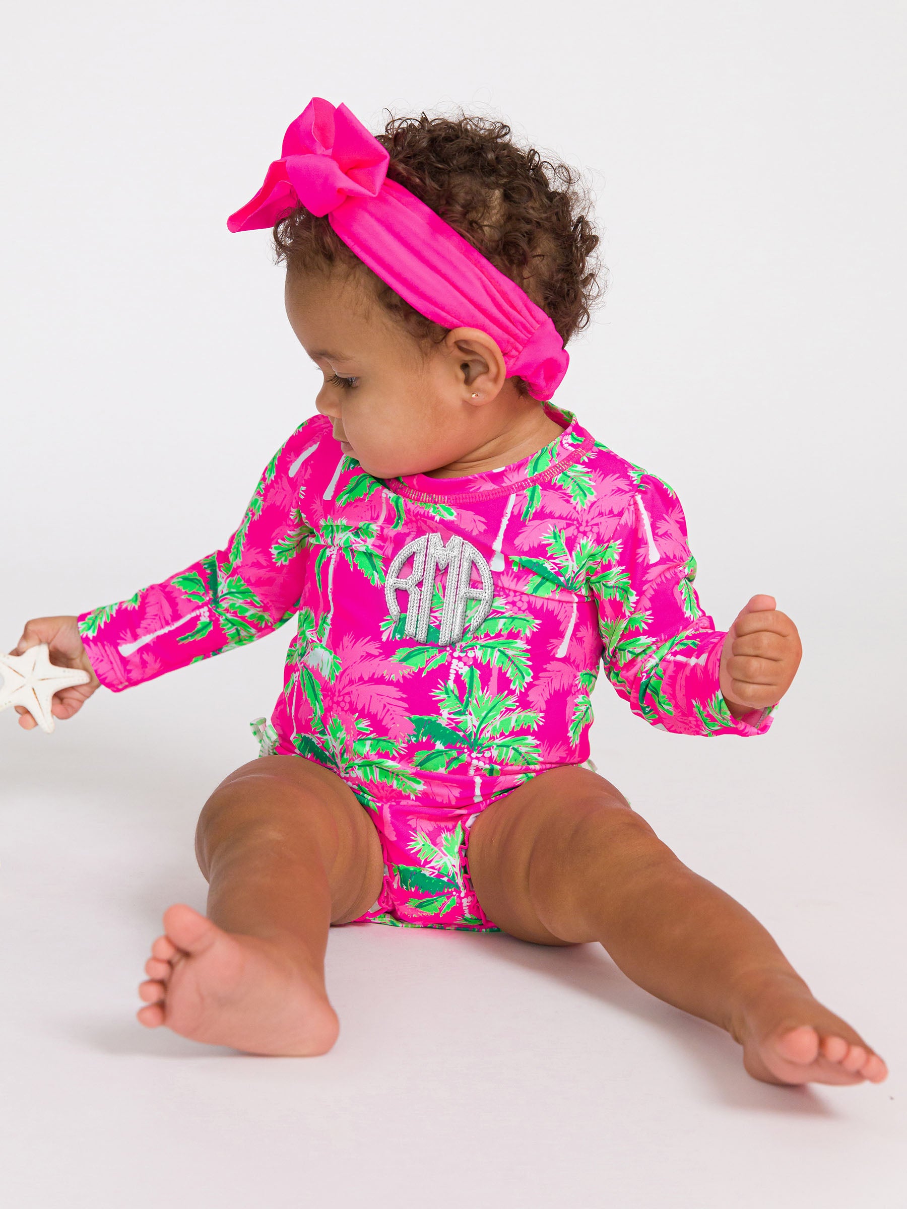 The Neon Floral Long Sleeve One Piece Rash Guard pairs well with accessories in white, black, gold, or navy, allowing for versatile seasonal wear. Let your child enjoy the sun in style and safety with this fashionable and functional rash guard.