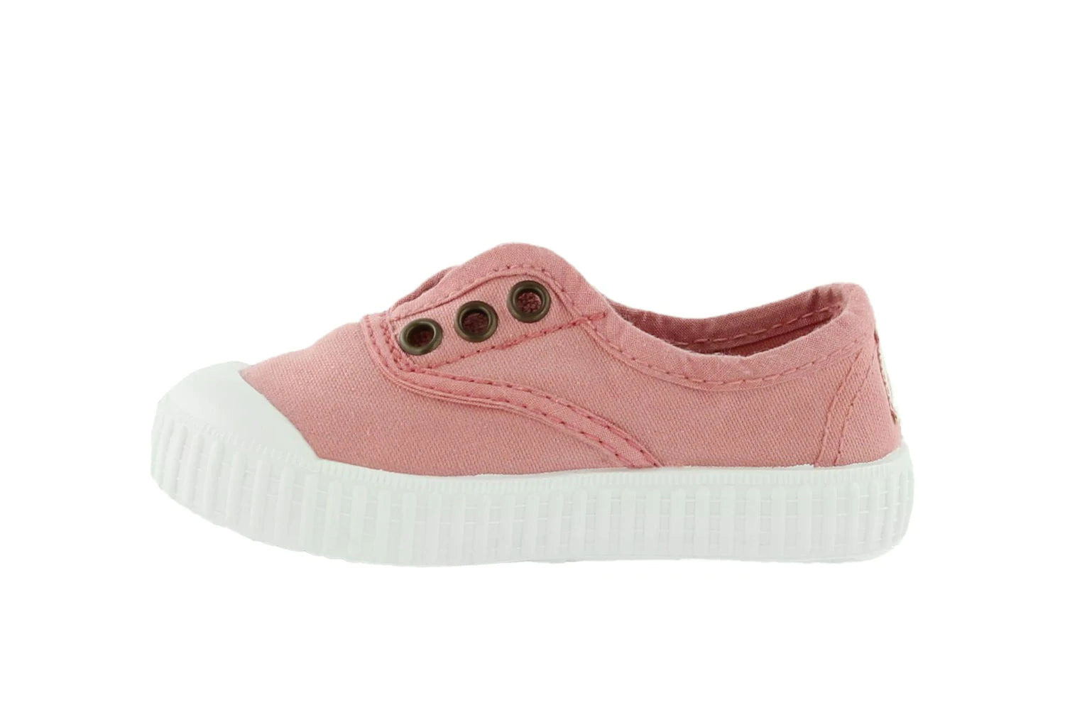 Made in Spain. Step-in, Slip-on. Laceless sneakers. Classic canvas shoe from victoria. Produced in Spain with Dyeable Recycled Eco Cotton (DREC®) canvas and natural vulcanised rubber sole with rubber toecap. Includes an insole for added comfort.