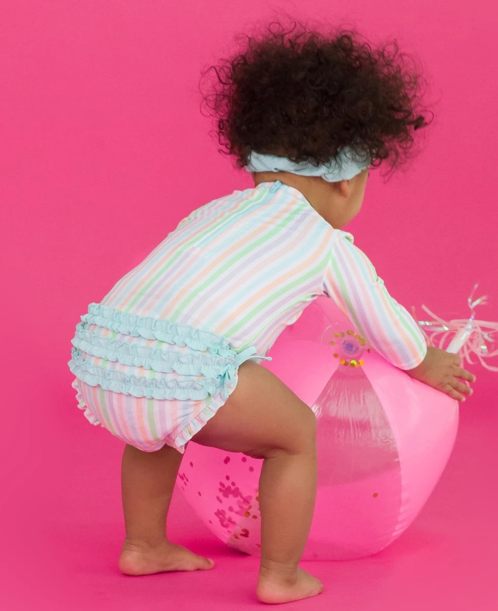 Pale Rainbow Stripe LS Rash Guard 1PC