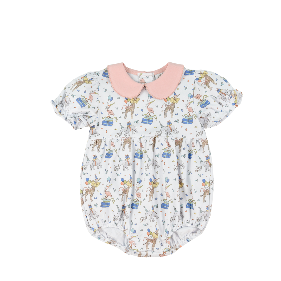 The Party Animals Girls Collins Classic Bubble dress features a charming print perfect for lively celebrations. Designed with comfort and style in mind, this bubble dress offers a classic silhouette that allows ease of movement for active little girls. Its playful pattern adds a fun, festive touch, making it an ideal choice for parties and special occasions. Crafted to balance durability with softness, it ensures your child stays comfortable throughout the event.
