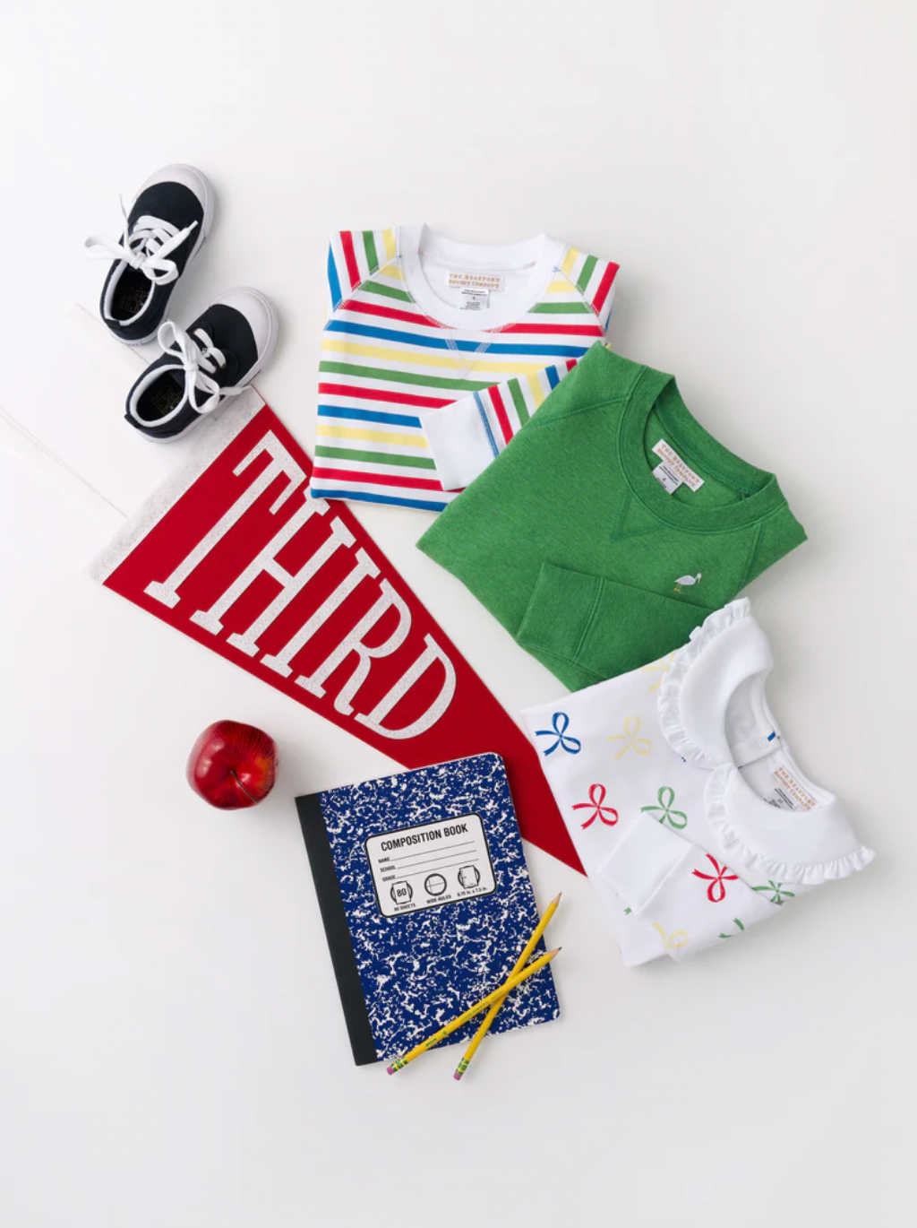 Our Cassidy Comfy Crewneck featuring Portland Sealife Stripe with Worth Avenue White is perfect for everyday wear. Your little ones will love how soft & warm this crewneck is, and you'll love how practical it looks!