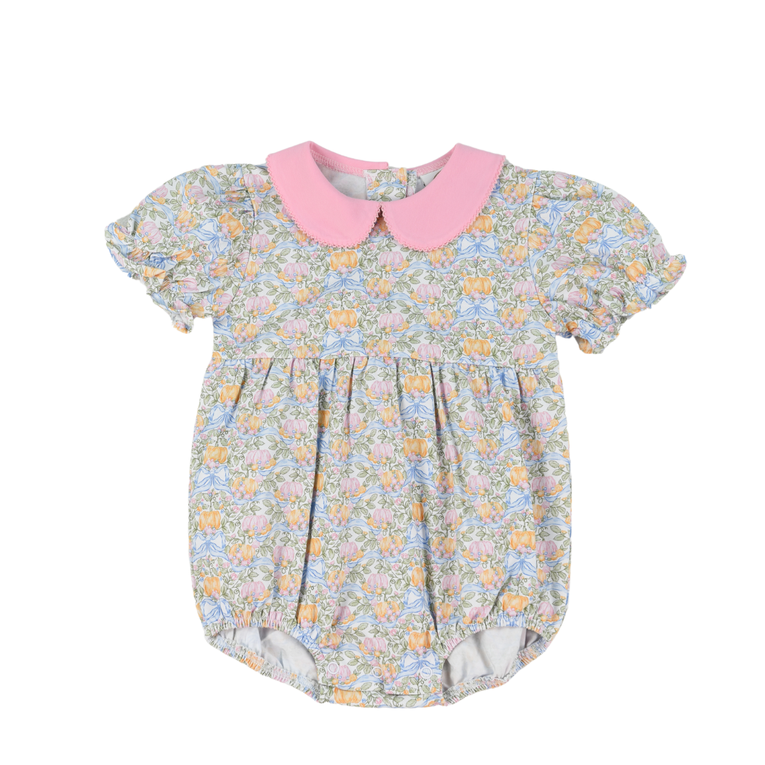 This Pumpkin Patch print knit bubble one-piece combines classic style with comfortable wear for your little girl. Crafted with soft, breathable fabric, it ensures ease of movement and all-day comfort. The timeless Collins bubble silhouette offers a charming, tailored look perfect for any occasion, making it a versatile addition to your child's wardrobe.