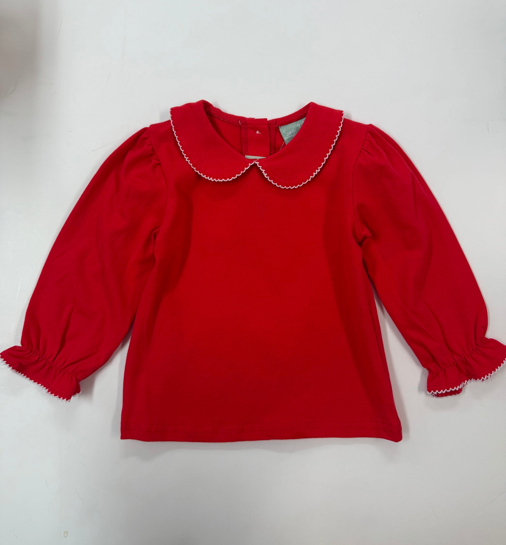 This charming Red Peter Pan collared shirt is designed specifically for little girls, combining classic style with comfortable wear. Its distinctive rounded collar adds a timeless touch, making it perfect for both casual outings and special occasions. Crafted with attention to detail, this shirt offers a flattering fit and easy pairing with various bottoms, ensuring versatility in your child’s wardrobe. Ideal for parents seeking a blend of elegance and practicality in children's clothing.
