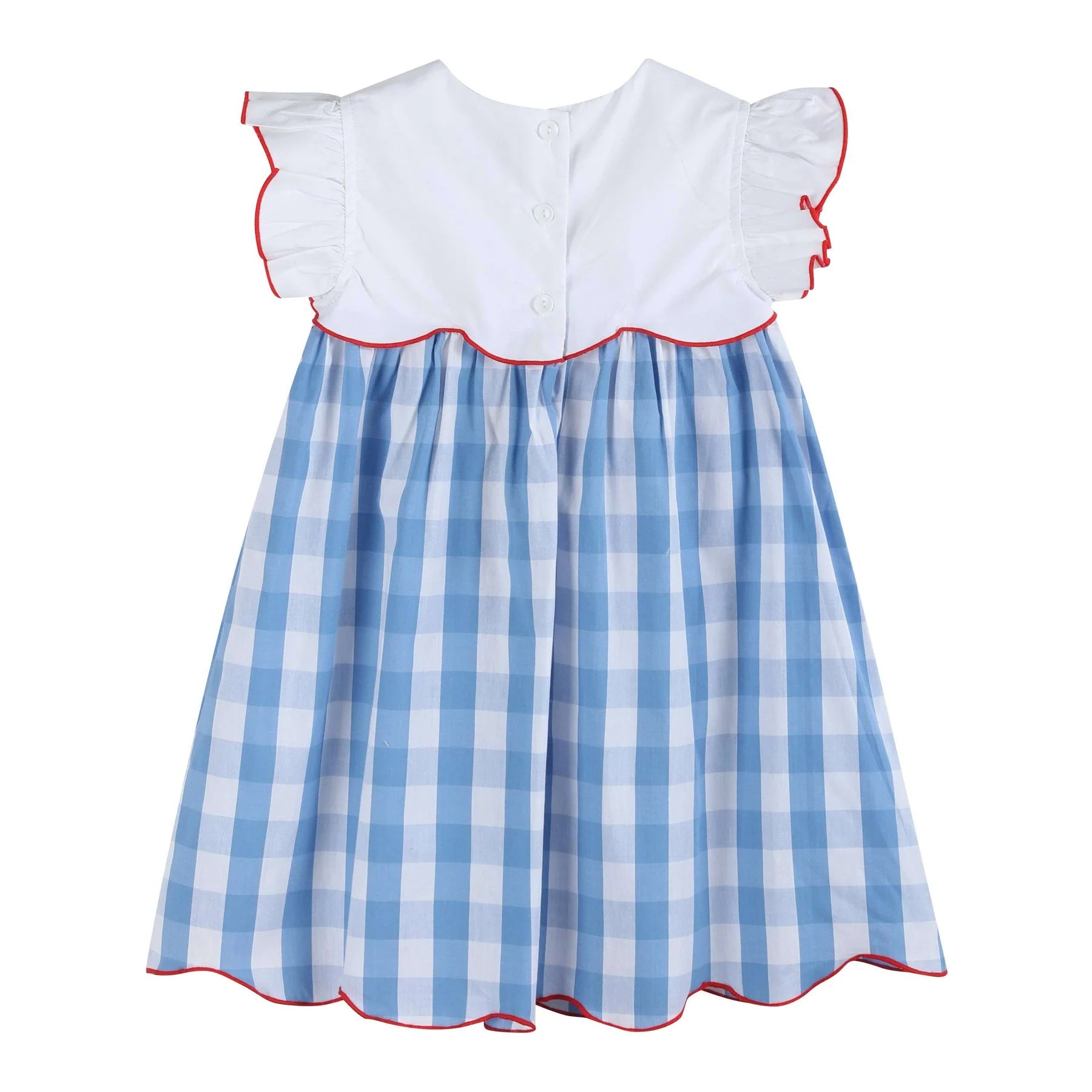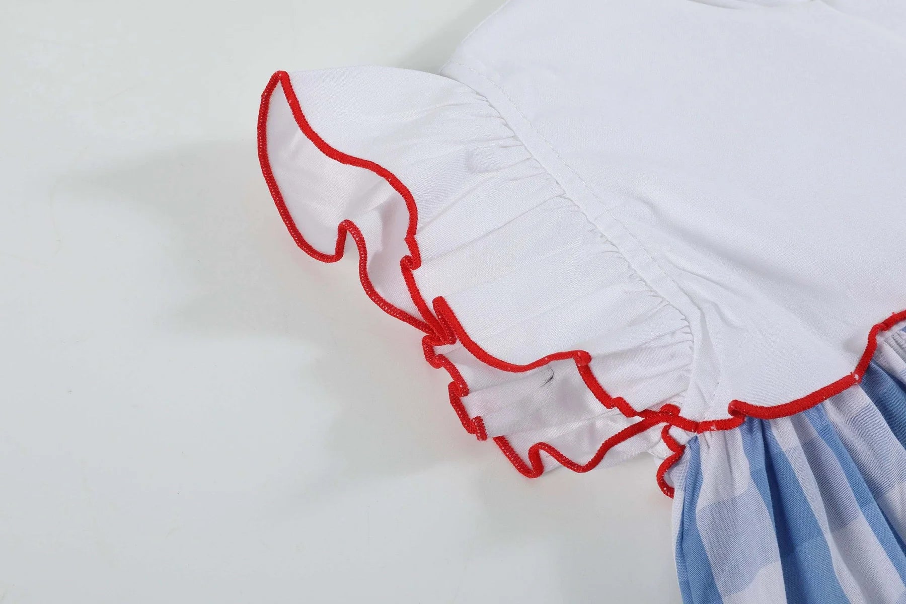 Let your little one shine this season in our Red, White & Blue Check Flutter Dress! Perfect for Fourth of July celebrations, summer parties, and patriotic occasions, this charming gingham style brings timeless appeal to any wardrobe. With its playful flutter sleeves and classic checkered pattern, it's an instant favorite for family gatherings and outdoor adventures. A versatile summer essential that captures that carefree, cheerful spirit every kid loves.