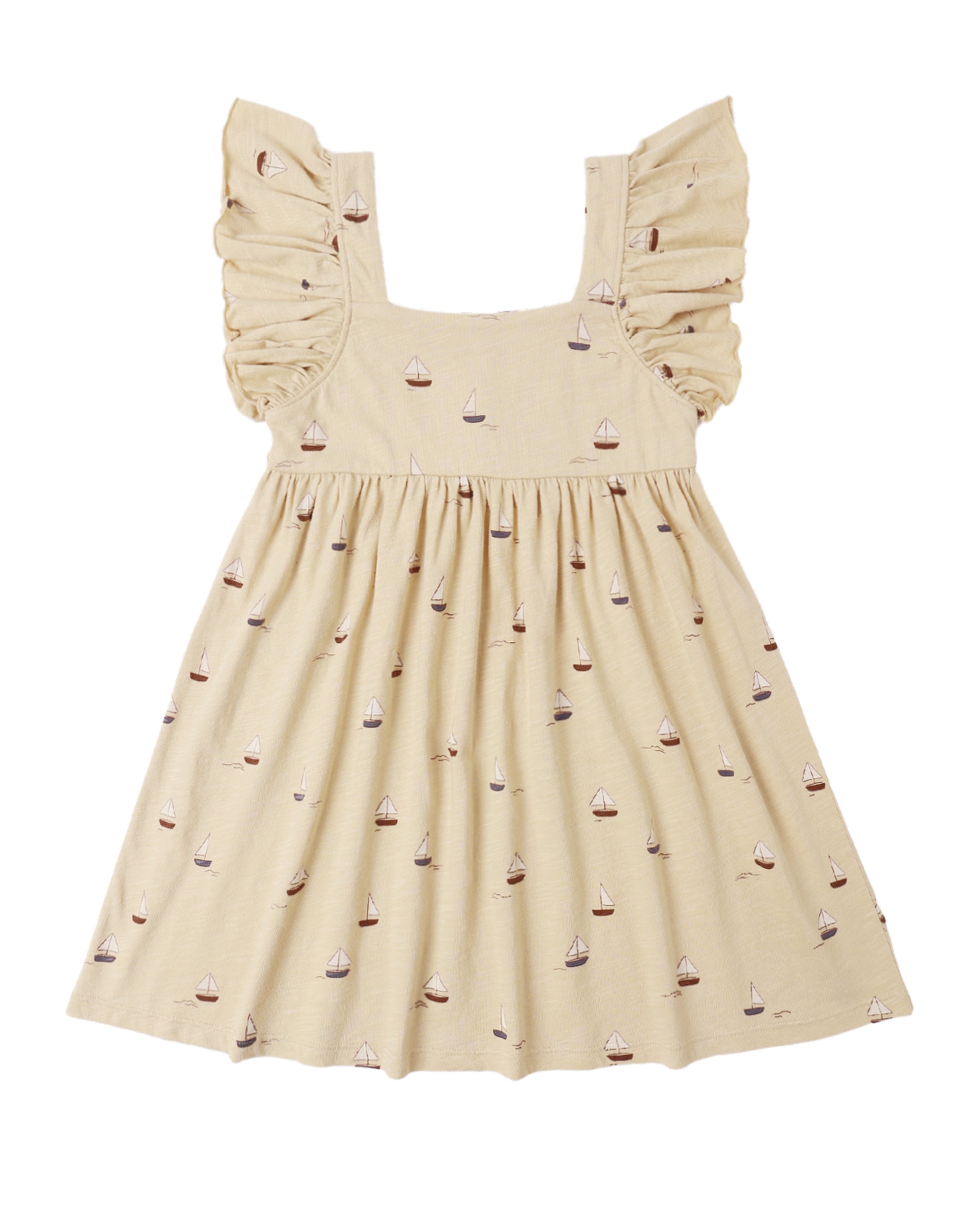 Catch the breeze in this whimsical Sailboat Mariposa Dress! Featuring cheerful sailboat prints and butterfly details, this playful piece is perfect for little adventurers who love the water and sunny days. The soft, breathable fabric keeps her comfortable whether she's exploring the beach, playing in the yard, or daydreaming about ocean adventures. A delightful choice for girls who embrace their imaginative spirit.
