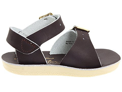The Sun-San® Surfer is a classic two-strap sandal that’s perfect for younger feet. An adjustable toe buckle and ankle strap make them great for both wide and narrow feet. Wear them comfortably all day long thanks to the lightweight, cushioned urethane sole. Rust-proof brass buckles and scuff-resistant water friendly genuine leather make them ideal for in-and-out of water wear. They clean up so easily, and with proper care will last for years