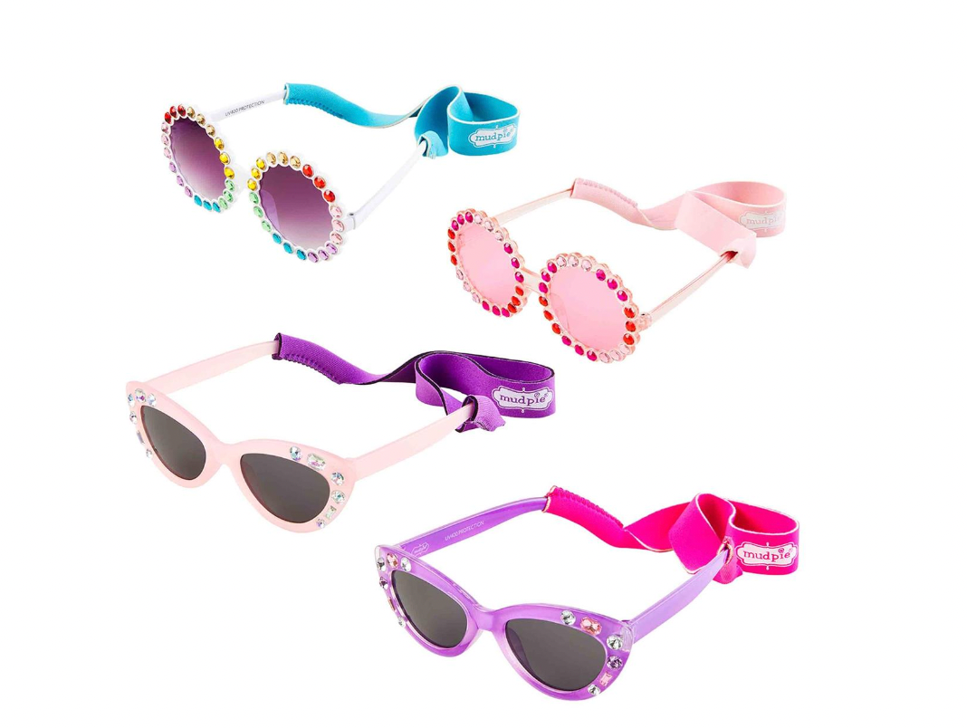 2-piece set. UV400 protected toddler sunglasses come with removable neoprene strap.
