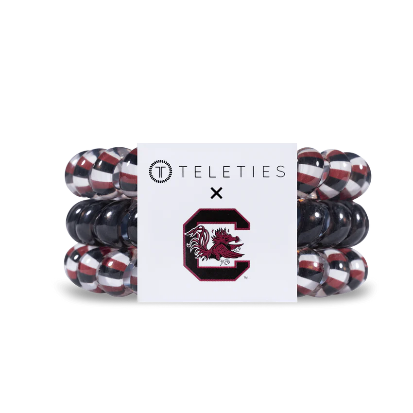 Hold your hair and enhance your style with University of South Carolina TELETIES. The strong grip, no rip hair ties that double as a bracelet. Strong, pretty and stylish, TELETIES are designed to withstand everyday demands while taking your look to the next level. Go Cocks!