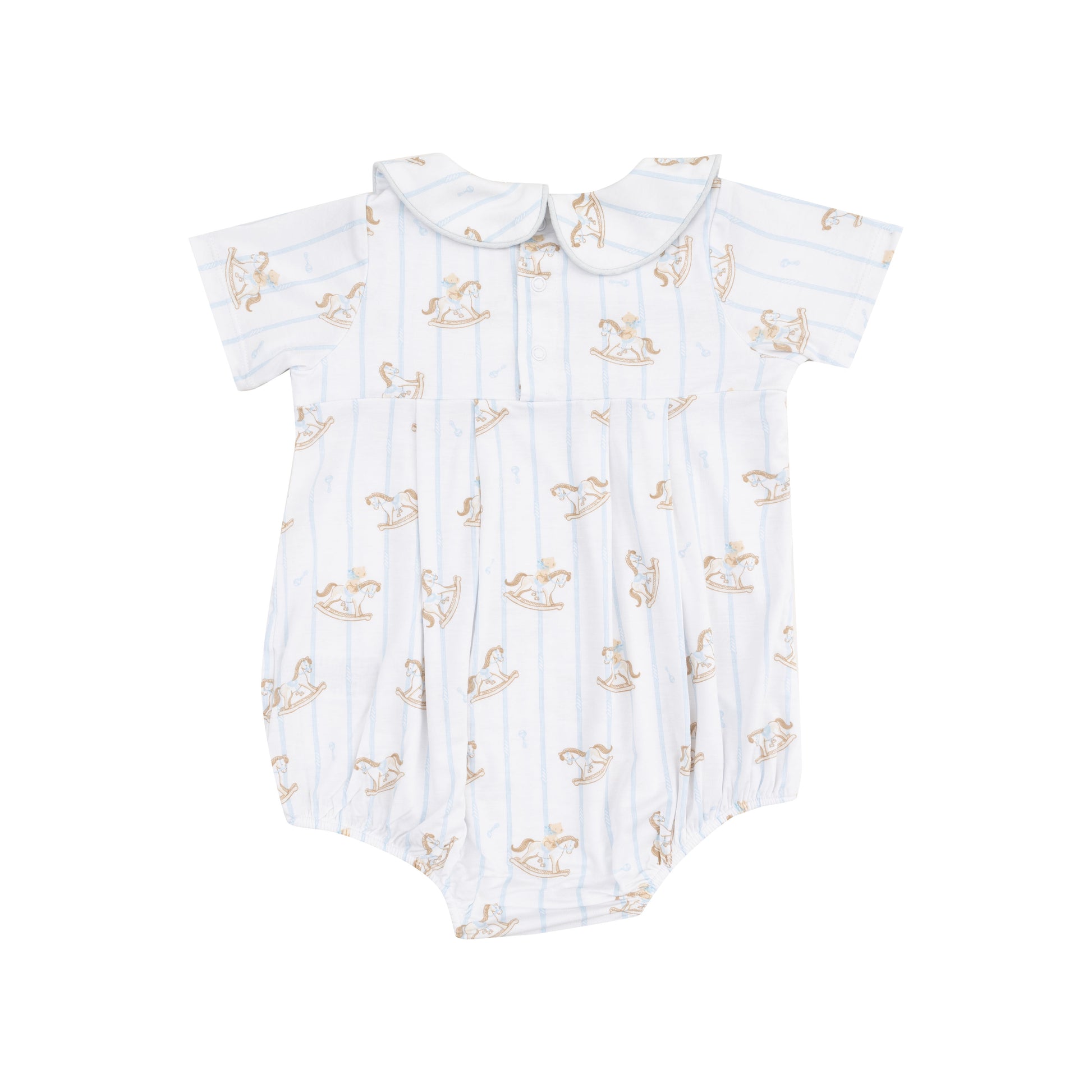Experience the nostalgia of childhood with our Vintage Rocking Horse Bubble for baby boys. Featuring a classic box pleat design, this bubble is perfect for any special occasion. Crafted with care, this bubble is sure to become a treasured piece for your little one.