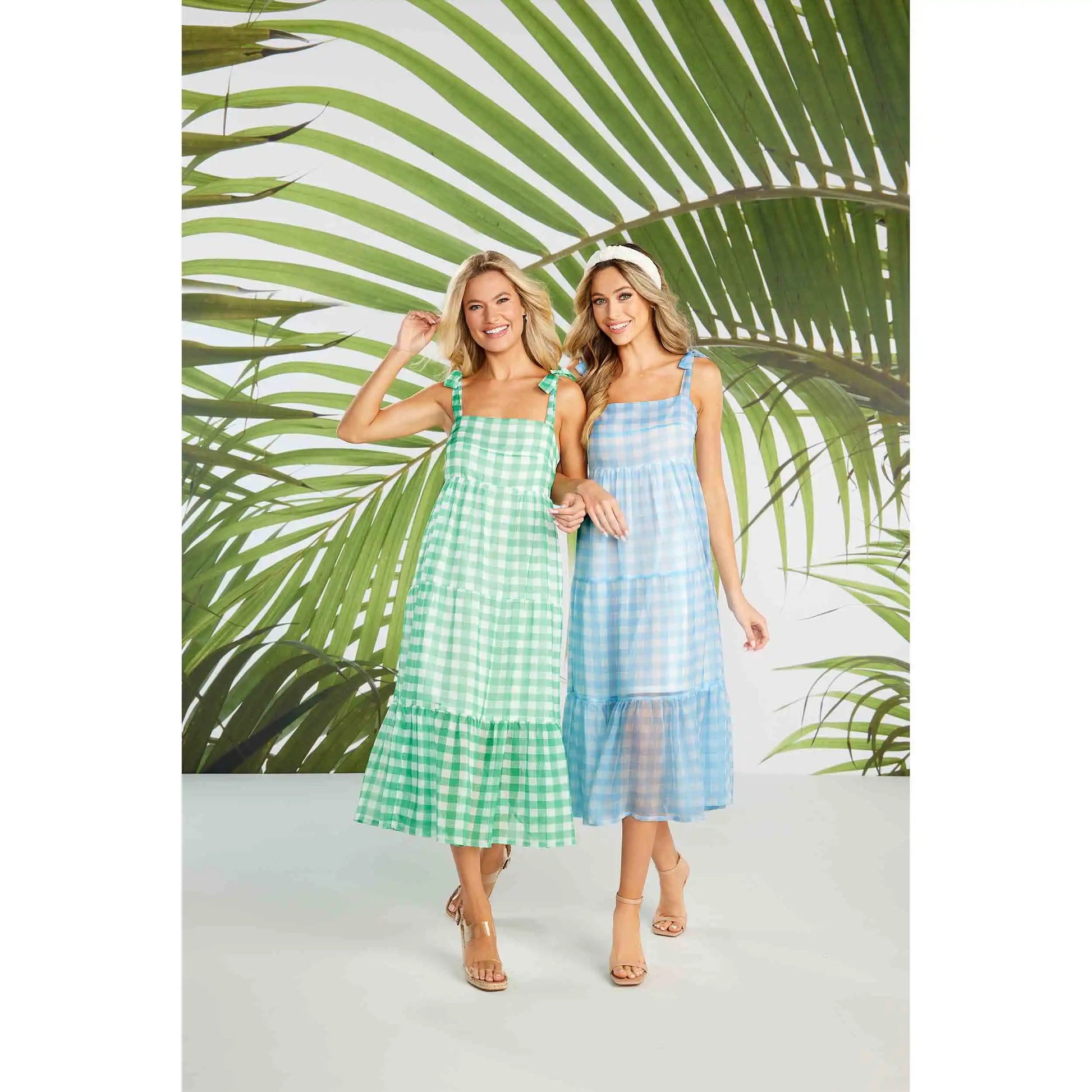 We're giddy for gingham with over this Vivianne Green Plaid Midi Dress. The gingham printed chiffon midi dress is fully lined. The dress features a fitted top bodice and flowy tiers. The dress arrives with adjustable self tie shoulder straps. Measures approximately 46 1/2" from shoulder to hem on size small.