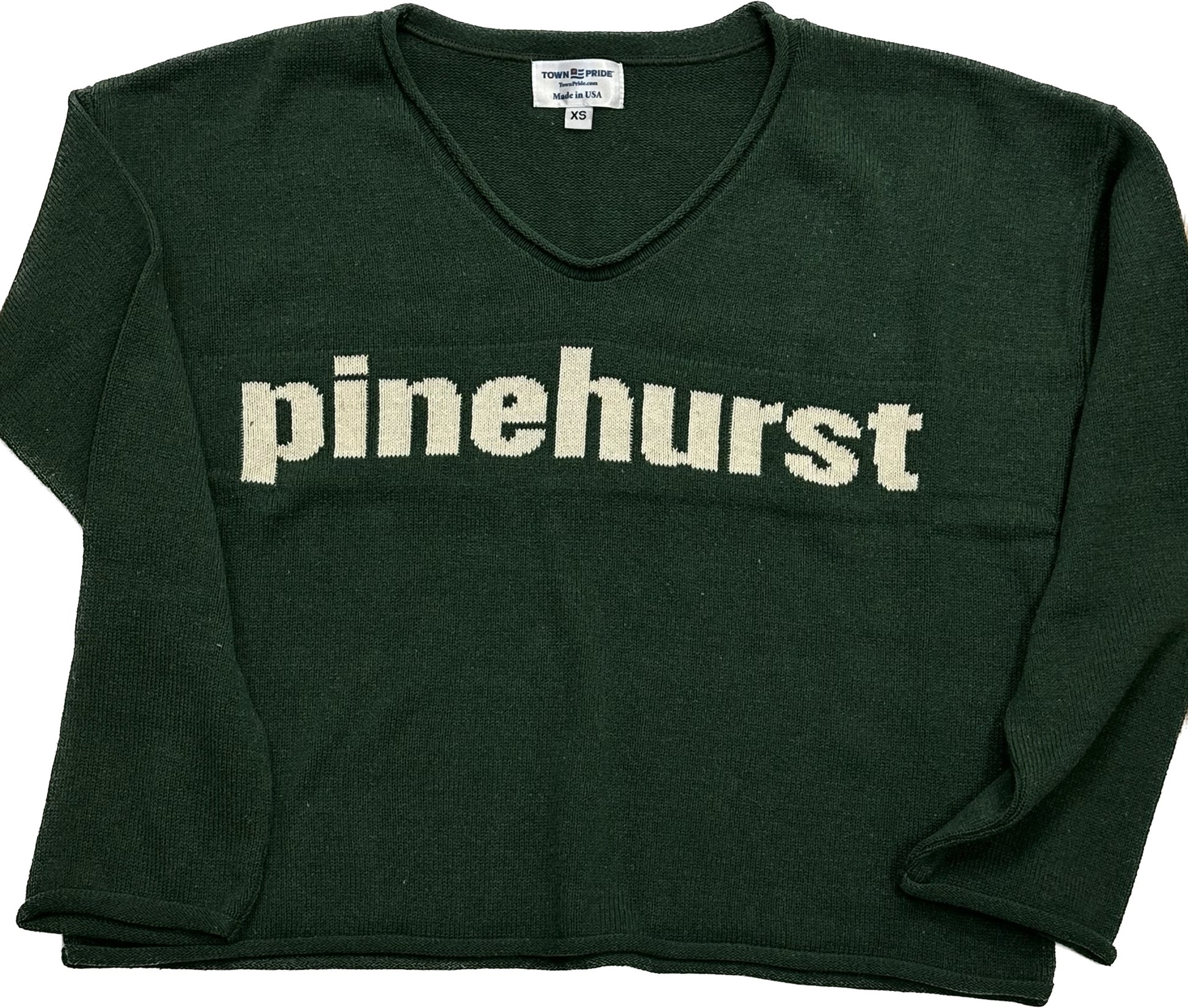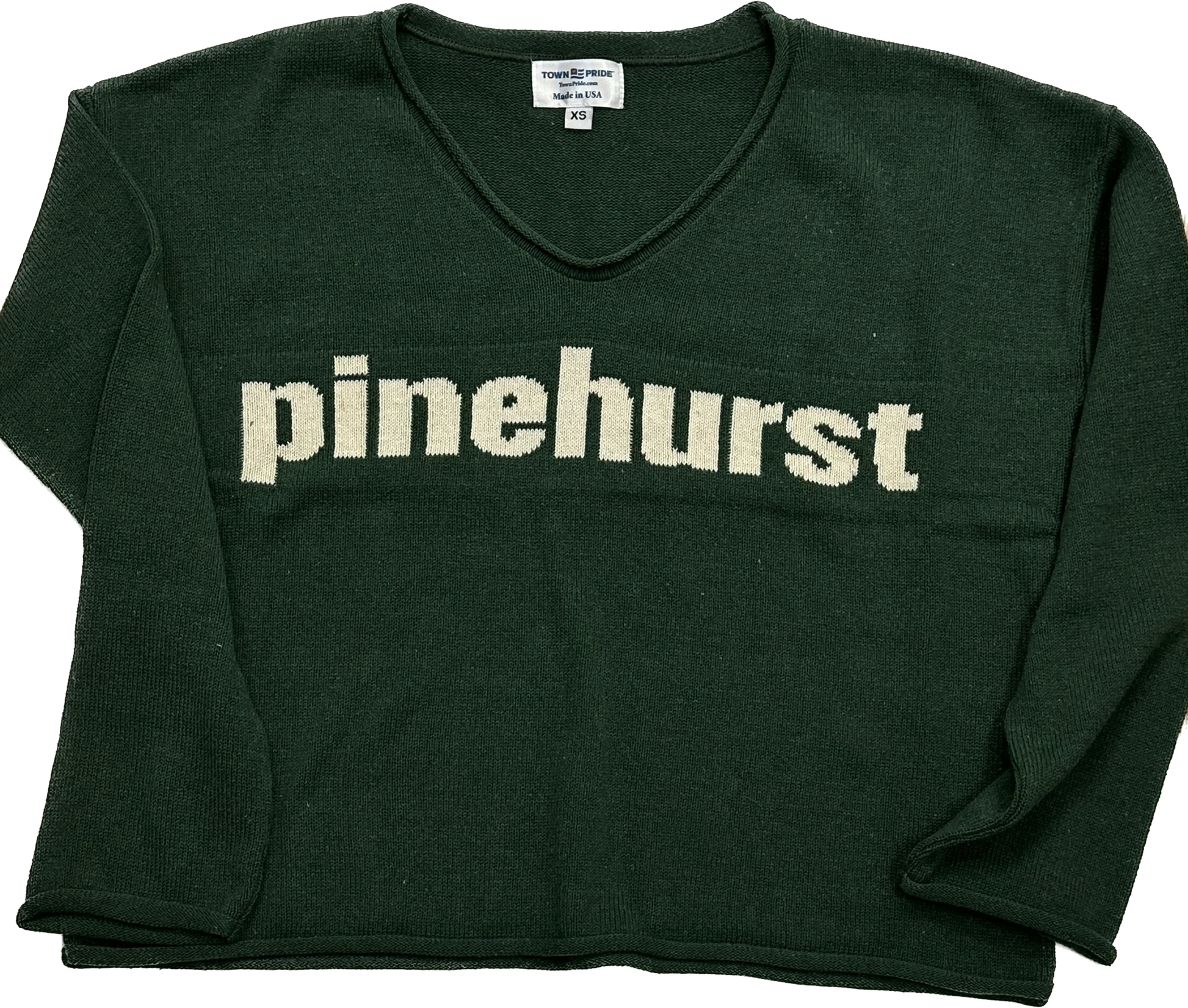 Women's Green Pinehurst Sweater. Perfect for the golf course or to support your town!